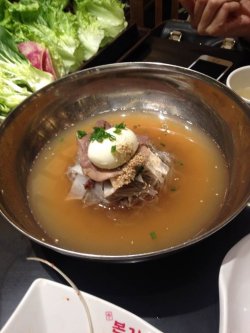 喜欢冷面和特色薄牛肉,感觉他们家的冷面很正宗,和在韩国吃的差不多,面不多,但是味道很不错的,料也丰富,还喜欢特色薄牛肉,超多汁的,很嫩的,确实很有特色,他们家的料也很好吃,沾牛肉一级棒!还有大酱汤每次必点,好喝啊,海鲜炒年糕也非常好吃,特别是年糕,已经很入味了,嗲,服务和环境都不错的,就是等位时间有点长!查看更多