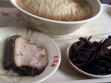 朱鸿兴面馆,路过才知道原来这家店很有名气 ,只是分店不多,是苏州的,苏式的面,还有汤包卖的,要了鳝丝面,理由家里不做鳝丝,不过这里的鳝丝不行啊,黑乎乎的,是不是爆炒过头啦?有点焦掉了的感觉啊,那个白肉倒是挺厚实的,结结实实的一大片肉,吃了很满足的,面是细的,汤蛮鲜的。