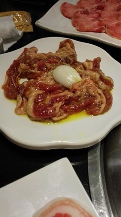权金城朝阳北路101号朝阳大悦城6楼10号(青年路口), 十里堡。味道还不错的一家韩国烤肉餐厅,而且会有很多免费赠送的小菜还有烧烤调味的洋葱之类的,感觉比较不错,要了那个很好吃的肥牛,大片肉的那种,放了洋葱在火上一起考,感觉很不错哦,味道浓郁咸香,烤熟搭配很好吃的辣白菜,味道更上一层楼呢。查看更多