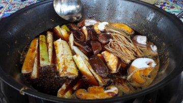 其实我算不上真正的吃货,在新店开业之前一直没有吃过李子坝梁山鸡;每一次聊起或想起的时候,打电话话预订已经来不及了,又不愿意到现场去排队等位,于是于是,就这样错过了好多年。不过关于梁山鸡的各种信息一直不绝于耳,心里也一直有份惦记。 20150111,我想对于李子坝梁山鸡来说,是一个有着重要意义的日子;终于可以在李子坝以外的地方吃到正宗的李子坝梁山鸡了——江北新店开业了。接到邀请,终于了却心里之念想。 新店位于民安大道1000号巴蜀丽景小区大门旁;轻轨郑家院子出或公交471民政局下。 这是一幢小二层的单独建筑,外观已装饰成鸟笼状;室内装潢颇有异国风情,尤喜各种形状的吊灯。细节考虑也算周到,每桌桌位附近基本都能找到带USB接口的电源插座。 餐具依然是搪瓷碗盘,很朴实的感觉;而我更喜欢这桌面各色图案的整体效果。 每桌一锅鸡,另有炒鸡杂,藕丁和蔬菜汤。 梁山鸡给我的印象一直都是药味重不太辣,不过新店这一锅鸡的味道更像是辣不怕。 吃完鸡肉后煮上一些菌菇蔬菜,比起吃鸡本身来说,更得我心,味道好极了。 因为是开业,店里安排了沙画表演,可惜没法拍照片;不过下楼正好拍到茶博士在掺茶。 另据了解,梁山鸡的从原料到生产整个产业链已经完全打通;在贵州与农户签约定点采购原料鸡;中央厨房统一宰杀分割鸡肉,工厂统一生产料包,配送到店后再按标准流程烹制,以保证每一锅鸡都是相同的味道相同的品质,并且全城配送也即将实现。 李子坝梁山鸡,不仅走出了李子坝,更是要飞到寻常百姓餐桌上;于我,想吃梁山鸡的时候可以不再纠结要预约要等位,可以拿起电话直接叫个鸡;对,叫个鸡!!