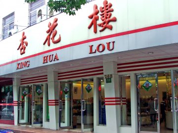 每年中秋节总是可以看见他家的月饼,很多人在门口排队换月饼。他家的月饼做的中规中矩,就是常见的椰蓉月饼,豆沙月饼,莲蓉月饼,还有莲蓉双簧。味道个人感觉比较传统,但是稍许甜腻了点。过白粥还可以。比较喜欢月饼皮,喜欢面粉的香味。单吃一个糖分有点高啊!!