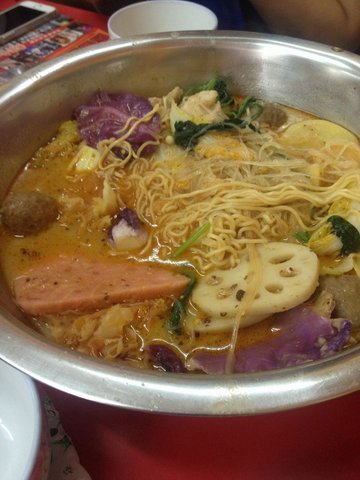 喜欢这种自选然后煮成一锅的麻辣烫,虽然感觉跟麻辣香锅似的,但是大家一起吃很入味的哦。选点鱼丸青菜什么的,配煮方便面好吃,好吧其实我是很爱吃麻酱和方便面煮好一起拌着吃的,尤其是天冷的时候,这家的调料还比较入味,辣椒根据自己喜好放就好了,算是比较辣的。