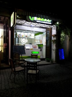 果麦有好多家连锁店,平江路上也是其中一家。类似的鲜榨水果店比较多,不过这家最有名,可能是因为分店比较多的缘故。生意不是太好,点的柳橙汁,感觉现在的橙子到季节了,所以都很甜啊,榨汁之后同样是甜甜的,感觉这家店满卫生的,制作过程都能看到