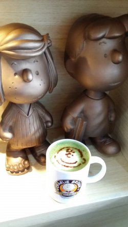 国庆节的时候在西岸看音乐节,离正大乐城很近,于是就被这家咖啡馆的史诺比吸引进来了。店里吃的东西其实和很多咖啡馆相似,但是造型都很可爱,我和我的小伙伴表示很欢快。点了一杯抹茶拿铁,上面有很可爱的史诺比拉花,萌的心碎。虽然喝起来味道普通,咖啡比较偏甜,味道是挺香的,但也没到让人特喜欢的地步。朋友点的朱古力牛奶,味道有点淡。还有很多造型可爱的蛋糕,这次没来得及试,下次可以一试查看更多