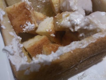 休闲店,下午茶的时间很多人过来,特别是女生,这家店就装修很好看,很适合小聚的,周末人多,比较嘈杂。蜂蜜吐司,他家的吐司看起来都不错,可是,吃起来就没有想象中的那么丰富了,本来是应该从傍边切的,怎知,我们就直接把上面的给弄下来了,所以样子是没了,里面的,炸过的面包粒,不是那么好吃,蘸上奶油来吃的,觉得甜腻,奶油是太多了,本身的面包粒有些蜂蜜,也是甜的。建议喝些红茶类的,这样会解腻些。