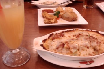 经常吃棒约翰的比萨 ,这次过去想换换口味,点了焗饭和焗面,还点了一个芝士条,原来芝士条就像一个小披萨一样啊,上面都是芝士,底下烘的脆脆的,一口吃下去满嘴浓郁的芝士味,意料之外的好吃啊,以后还会继续选择的。…查看更多