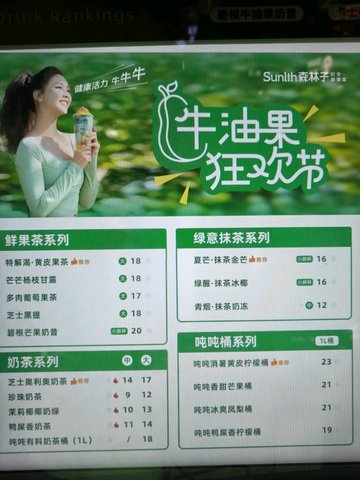 芒芒杨枝甘露 / 碧根牛油果奶昔 / 大满足奶茶 / 葡萄柠檬茶 / 荔枝冻冻冰 / 卡士蓝莓莓