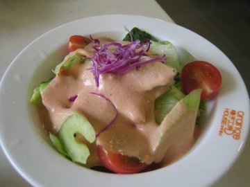 因为来之前从美食网打印了优惠券,所以逛遍了远东之后,最终选择在南开区东马路上远东百货二楼的橘子工房搞定中午饭。贴合主题的橘色是整个店面的主调,清新明快的装潢,让心情也鲜亮起来,让人食欲大增。靠窗的位子能看到不远处的街景,感觉很惬意。食物的种类挺多的,中式、台式、日式、意式等各地风味都有,选择面比较广,但价钱小贵,服务质量也不算特别好。还没吃完,连招呼也不打就把放刀叉的餐篮拿走了,而且餐篮中的湿纸巾含费用也不提前打招呼,结算的时候才被发现,好歹也该提前说一声呀,而且结算刷卡的时候,四角钱就招呼也不打的被理所当然的四舍五入不找零了。哪有这种服务啊!!!算了,还是来说说我们选的菜品吧:一份菲力海鲜总汇套餐,一份芝士焗海鲜总汇套餐和一份香酥牡蛎。套餐含蔬菜沙拉一份、美式咖啡或绿茶、红茶任选一杯、鲜橙一个、玉米浓汤或罗宋汤任选一份、餐包2个。喜欢芝士焗海鲜总汇里浓浓的芝士味道,但罗宋汤味道不是很正宗,牡蛎土腥味比较重。 吃剩的橙子皮