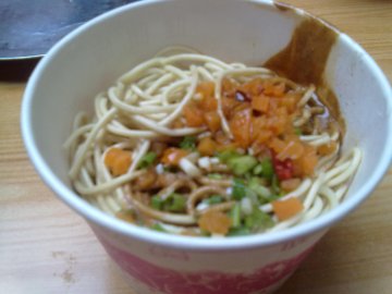 欧阳早点其实就是个热干面的摊子,来吃的人蛮多的,因为武汉人都是在外面过早的,没什么人在家里吃。热干面的调理蛮多,而且辣萝卜和酸豆角是自己随便加,很好吃,芝麻酱很浓稠,一拌起来很香。