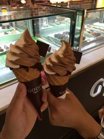 歌帝梵巧克力 GODIVA,在东大桥路9号侨福芳草地大厦B2楼LG2-06号。最喜欢吃这里的冰激凌,口味太好了。价格比较贵啊,45元一个。冰激凌的巧克力很多,入口细腻。蛋卷皮很新鲜,非常的脆。