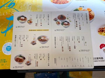 歌志轩秘汁拌面 / 火焰肉盛秘汁拌面 / 温泉蛋 / 捣蛋土豆沙拉 / 十时浓厚豚骨汤拉面 / 溏心蛋
