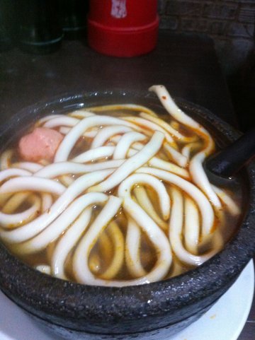 不知道味道到底正不正宗,只是因为很喜欢肥肥的土豆粉,吃起来又滑溜。在附近逛街顺便拐到这边看到土豆粉就想吃吃。师傅是现场煮土豆粉,猪肝切得很薄事先用淀粉和调料腌制过,等汤煮开后放进沸水里煮熟,猪肝吃起来很滑嫩,一点都不老。土豆粉很粗又长,相互交错盘在砂锅碗里特别有意思。让师傅加了点辣椒油在里面,吃起来又鲜又香,特别爽滑,每次挑起一根吸溜吸溜进嘴巴里,那种感觉很好呢。