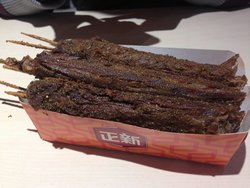 20131224with敏敏和校长 日月光第二站托校长券的福当天9家店3个人的人均才21米~\(≧▽≦)/~这家店搞活动是买二送一,一根的价钱是7米有20米的券,就贴了1块弄了3根,因为有券就不能买二送一啦。。。这样一人一根一根鸭脖很长的说,店员会把一根凹成2根给你冷冻的再油炸再烤一烤,还放了很多的孜然,反正我吃起来感觉更像是羊肉。。。比较一般不过倒也便宜,随便吃吃还是可以的