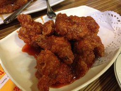 去之前有做过功课,选的是比较招牌的几种~炸鸡:选的是有酱料的,点的半只。我觉得量还是很大的,看看部位,貌似真的就是整只鸡剁成几块下锅炸制的,浇上他家秘制的酱汁,味道很不错哦,不过不建议多吃,酱汁的味道比较浓厚,吃多了比较腻...芝士猪排:我很喜欢的一道菜~味道超好,整块的猪排浇上酱汁,很美味哦~相比炸鸡,没有那么的油腻,赞~炒码面:貌似特别火的一道,分为大小碗,询问下店主觉得小碗就足够了,上来时还有有些惊吓,很大的一碗啊,估计两个姑娘一碗足够的,里面的料比较丰富,海鲜有海虹,蚬子,鱿鱼条,菜类就是洋葱比较合胃口。汤的味道就是很传统的韩式料理的味道,微辣。最惊艳的就是里面的面了,绿色的,应该是某种蔬菜面,味道超好~PS.之后看到其他桌点的大碗的,额,其实我觉得更像是小盆,还是觉得自己比较英明的~辛拉面炒年糕:这是韩式店基本的菜,味道比较正常,辛拉面放的时间长一点也没有很腻,味道属于甜辣口..三个女生四种菜,非常饱啊,炸鸡还有剩的,足以看出他家量很大哦~去的时候4点左右,店里人已经很多了,很多都是鲜族的貌似还有韩国人,看来真的是比较正宗哦,有机会再去尝尝其他...…查看更多