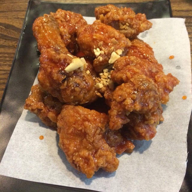 西塔街的一家餐厅,挨着乐天利,因为韩剧《来自星星的你》,跟着都教授一起红的发紫的就当属啤酒和炸鸡了。中午时间去的,人超级多,本来以为只有晚上才会爆满呢,没想到中午也会这样。本来去之前也做的功课的,结果人一多把要点啥都给忘了,最后就只记得要点炸鸡了,后来又点了炸猪排,大酱汤还有炒年糕。炸鸡有两种口味的,要的双拼,原味的比较一般,也不比别人家强哪去,有甜辣酱的比较好吃,而且有特色,就是价格好贵 ,一份要38块钱啊。炸猪排是朋友点的,本来炸鸡就是炸品,又要一个猪排,一看就感觉很腻,结果她自己也没吃两口,最后打打包了。大酱汤很好喝,应该是大酱的原因吧,酱汤的味道很浓。辛拉面年糕,一份还挺多的,不过我只吃拉面了,年糕实在没吃习惯,又甜又辣感觉好奇怪,而且价格也好离谱,一份要30块钱,逆天了。总体来说,环境还可以,服务就那回事吧,谁让人那么多呢,东西的味道一般,价格超级贵 ,性价比很低,闹个热闹尝个鲜,以后应该不会再去了。…查看更多