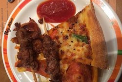 城乡贸易中心东侧商业楼2楼的自助,同学聚会来这里吃的,其实选择自助一是图个经济实惠,二是也能解决众口难调的问题。我们晚上6点左右来的,人还挺多的,不过人多也好,各种上新很快,尤其是披萨,总能吃到热乎的。其实他家的披萨还可以,起码饼底不那么的厚,中间的料也足,趁热多少还能有点拉丝。羊肉串就相对一般了,肉有点老,估计是炸过了的缘故。沙拉什么的也都还可以。58一位,性价比还是挺高的。查看更多