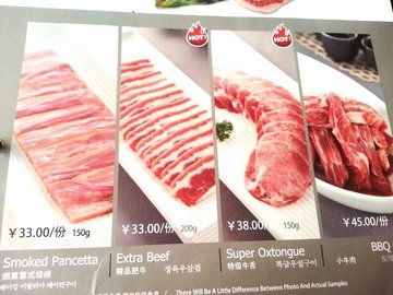 他家“最大的特点”自然就是水晶烤盘了,质地不得而知,但不会像传统箅子那样“容易焦”,需要“不停更换”,而是“中途就可以清洗”,“拿水一冲”,“铲子一刮”就又干净了,“非常方便”。各种五花肉也很赞,尤其刨子五花肉,切得“很薄”,烤到“边缘焦脆”,口感“挺棒”。赠送的各式小菜“依旧丰富”,“还能续”,吃光这些就饱了。