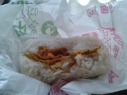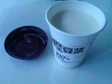 永和豆浆的早餐,让我对其卫生状况比较放心一些,所以经常会买买他们的豆浆,非矾油条,粢饭团什么的。今天早上吃了五块钱一套的粢饭团和豆浆套餐。 豆浆么,补补雌激素,呵呵呵! 粢饭团,挺小个的,里头有半个卤蛋,一小段油条,还有些萝卜干夹在里头,蛮不错的!