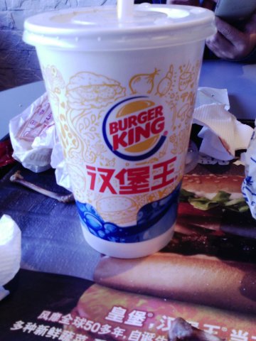 一日路过新世界想起还有团购没吃就进去了没有了大悦城店的大汉堡那么瞩目,里面也没有大悦城店的大,但是有一点挺好,不用排队,可能是过了新鲜劲儿吧~自从汉堡王来沈阳后我只去过两次汉堡王,那个人那个厚啊~都快挤死了,点餐还慢~所以现在好了,人少了。芝士牛油果风味堡,超级小的一个汉堡,我要是想吃饱的话最起码也得两个,而且还得吃点别的搭配~这个汉堡里面虽然有牛肉,但是觉得这牛肉怎么没有火烤的味呢?跟麦当劳巨无霸里面的牛肉味似的,一点都不好吃。中份薯霸王,汉堡王最好吃的就是薯条了,粗粗的,炸物嘛~没什么可挑剔的,就是单纯的好吃。中杯汽水,我最烦的碳酸可乐- -...不说了就当作一顿点心来吃吧- -牛油果风味堡真是不好吃啊不好吃...