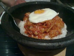 【环境】环境一般,赶上晚上来的,人挺多的。【服务】服务态度真心不太热情,点餐到上菜都是冷着脸。【价格】价格稍微有点贵。【味道】石锅拌饭一点都不好吃,米饭软黏黏的,吃着都没有胃口了,菜有菠菜,桔梗,豆芽,蘑菇,都腌制过吧,有点微咸的,但是菜都湿湿的,有点影响口感。大酱汤酱香的味道还是可以的,里面的豆腐放的不少,配的米饭也是稍微有点软。除了点的两个饭,还要了一杯饮料,结果半天都不给上,好容易催促着上了,还没给吸管。…查看更多