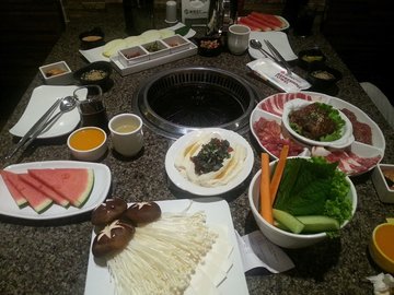 周末来通州华联商厦闲逛,顺便在4楼吃的饭。老公要吃烤肉,儿子也要吃。店里环境还不错,人不算很多,估计我们来的早吧。7点多就开始上人了。他家的吸烟口离的近,所以空气很好。他家的小菜还不错,有泡菜,就是给的太少了,导致没吃够,又点了一盘。烤牛肉不错,翻几次就熟了。主食必点冷面,汤很好喝,即便是冬天,我也很爱吃这口,因为现在商场里实在是很热呀。