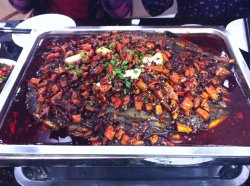江边城外巫山烤鱼名气很大,一直因为排队的原因没有吃,这次看见居然不用排队,哈哈,点的是招牌清江鱼,豆豉味的,烤的很入味,味道都渗透到鱼肉当中去了,不是很辣,应该很适合上海人去吃,鱼烤的微焦,很香,很嫩,点的韭菜盒子也很好吃,适合一大家子吃饭的地方Read More