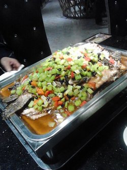 离公司很近的,中午一群女孩子去吃,8个人点了2条鱼,一些小菜加了几碗饭然后发现不够啊!哈哈!有几个大胃王!豆豉味的要的是清江鱼味道稍微一点辣怪味的要了鲶鱼我个人比较喜欢怪味的也可能等烤鱼的时候大家都饿了吧!30分钟左右上菜的加了一些配菜,量比较少,也可能人多,反正最后全部吃完了!盘子比较浅