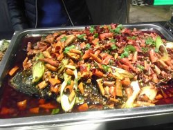 人满满的嘛,生意不错哦。吃过怪味的,服务员mm说比较辣,不能吃辣的不要尝试,然后就点了鱼香的,一开始还迟疑来着,本来就是鱼么怎么还鱼香哈哈。专门提一下,有个mm服务态度超级好的,不过到最后我也没问人家的名字,瞄了一眼好像叫什么欣,三个字,实习的,服务态度真的很好,店长一定要雇她啊哈哈哈。鱼香味的清江鱼,味道酸甜辣,真心不错吃,不过配菜就差一些了,可能这种口味的汤不太适合菜类,土豆豆皮都挺好吃的,莴笋的味道就差些了。麻将凤尾,就是麻酱油麦菜,麻酱肯定是里面放了东西的,不过很好吃。川味凉面,挺好吃的。果仁菠菜,花生和杏仁,杏仁不甜不过和菠菜是绝配哦。还点了个甜的蓝莓豌豆泥吧应该是,甜的配辣的很好吃。川北凉粉有点硬,不造为啥,还是因为在家都自己煮凉粉吃,所以觉得硬捏= =环境不错,桌子挨的近但也不会挤,来吃饭的人不少,一直保持这样生意应该很不错的说。添水很及时,茶味道不浓不过挺解腻的,还会再来吃的哦。…查看更多