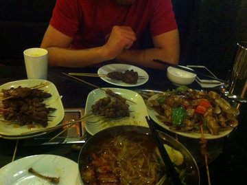 这家店就在万寿路西街,环境很原始的木制装修。他家的烤串都不是自己烤,所以省心不少,就是别多点,我们基本都是10个10个点,这样总能吃到热乎的。羊肉串是3元一串,肉很嫩,而且基本没什么肥油,嚼着特别香。主食来点烤馒头和疙瘩汤,吃的挺滋润的。