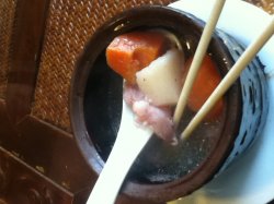 乌骨鸡汤 ashin954680839等级22012-09-116 浏览 关注 这家店的特色就是,汤的食材都是你自己选择的,然后放进锅里拿到后厨房去煲,里面不放任何调料,煲好之后拿上来的汤是淡的,盐都要让你自己加。我爸爸妈妈3个人选了一只一斤三两的乌骨鸡,配料选了冬瓜、腐竹红枣枸杞还有一些菌菇,一共78元。汤色面看上去油光蹭亮,把鸡油都熬出来了,味道很鲜美,冬瓜吸走了些许鸡油,菌菇吃上去也吃得出记得鲜味。妈妈说以后自己家里煲汤也不放任何调料,还是吃原味的鸡汤最好吃。黑胡椒牛柳粒,胡椒味道太重啦,有点咸,要过饭吃,不过还是很嫩的。玉米烙么,十分普通的点心,味道么也大同小异,还是可以吃吃,就是没什么特色哦。…查看更多以上食记乃用户个人意见 , 并不代表OpenRice之观点。赞好分享乌骨鸡汤 汤司令土灶煨汤馆 https://s.openrice.com/KtLT100R2W300检举 动感超人 汤头很好。我也想喝汤。2012-09-12 回应 张贴 评分4味道4环境4服务4卫生3抵食人均消费¥64 (晚餐)