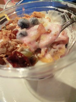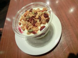 最近wagas跑得相当勤快相对的 星巴克已经不太去了~不知道是不是老板看我是常客这次竟然很友好地送了我个水果杯~~开心的呀 水果杯里的水果可丰富了~~我正好可以补充点维生素闹~平时懒的要命 而且怕冷 都不肯吃水果这个水果杯最适合我这种懒人了呀~嘿嘿,好吃又方便!!这些水果都是很新鲜的 没有浸过糖水有的虽然有点酸 但是我喜欢吃水果本身带一点酸度纯天然的东西 我还是很乐意去吃的~酸奶杯是我来过几次都想吃的这次正好早饭没吃太饱 还有胃口吃得下 正好来尝尝这个酸奶杯!!看上去就超级好吃的而且感觉里面的内容是很丰富的一开始以为就酸奶杯上洒的脆谷 坚果已经是全部的食材了没想到酸奶里面还加了好多新鲜的蓝莓而且还是蛮大颗的 应该是进口的蓝莓吧 不会太酸 蓝莓肉质的硬度是刚刚好的 所以应该还蛮新鲜的第一口先挖了表面的脆谷和坚果 外加酸奶 一起吃酸奶的酸度也很不错!上面的配料很脆 很好吃下面酸奶喝蓝莓一起吃 也非常美味一杯酸奶杯吃下去还蛮饱的 感觉里面的配料好多酸奶实际的量有点少了。。如果酸奶能稍微多点会更好呢~来这里 咖啡肯定要点的这次喝了拿铁这里的咖啡豆还是蛮好的咖啡都能闻到咖啡豆特有的香味点了一个大杯 慢慢喝~~也终于尝试了这里的意面点的这个意面里面是鸡肉的还有一些菠菜 撒了点cheese粉意外的是这里面的鸡肉!!很好吃!!可是很少,吃了还没过瘾。。就没了。。cheese粉我也爱 洒一点在这面里面很搭很好吃~然后悲剧地发现嘴巴又渴了还是点了咖啡 选了摩卡 比拿铁甜一点还想着晚上回去估计要失眠了~不过 只要好吃好喝 阿龟都顾不得那么多啦~大爱wagas~~~查看更多