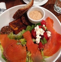 价格实惠的西餐厅,再加上连锁的品质保证,所以人气很旺。店里的氛围很安静,可以静静的享受着美食,让人感觉很舒服。三明治很新鲜好吃,面包松软的同时,在三明治里夹的蛋和火腿,口感都超级嫩。朋友的烟熏三文鱼意面,味道也很好,意面不湿不干,掌握的火候很好,再配上我们大爱的烟熏三文鱼,无论食材还是味道都很棒。最后提下他们家有免费WIFI,信号也不错。查看更多