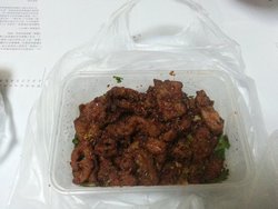 沙县小吃芍药居村5号院经贸大学东门对面, 对外经贸。点了一个孜然羊肉,直接打包了,店里面人太多了,打包也很快的,回来吃得时候,羊肉还是温热的,感觉很不错,炸过的那种,羊肉裹了很多的孜然,还有一点辣椒,味道不错哦。