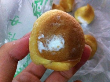 有一次坐火车无意间发现了这家小店,在来福士购物中心的地下一楼。她家是一家西饼屋,除了有泡芙还有酥饼、肉松卷之类的常见糕点。但是泡芙最有特色,有原味、巧克力味、蓝莓味等味道。吃来吃去还是觉得原味的最好吃:薄薄的一层皮,咬下去满嘴都是奶油。