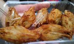 这个是好朋友说比较好吃的,然后就买来尝尝,15块一盒只有7个,而且小小的。看到应该是用冷冻的榴莲酥过油炸一下,刚炸出来特别烫,等一会凉了外面那层酥皮就不脆了,里面倒是榴莲的味道,不过冷冻食品总是损失很多原味,尝过一次就够了。
