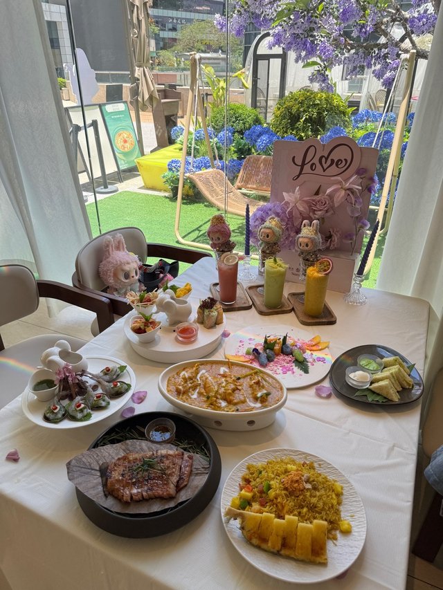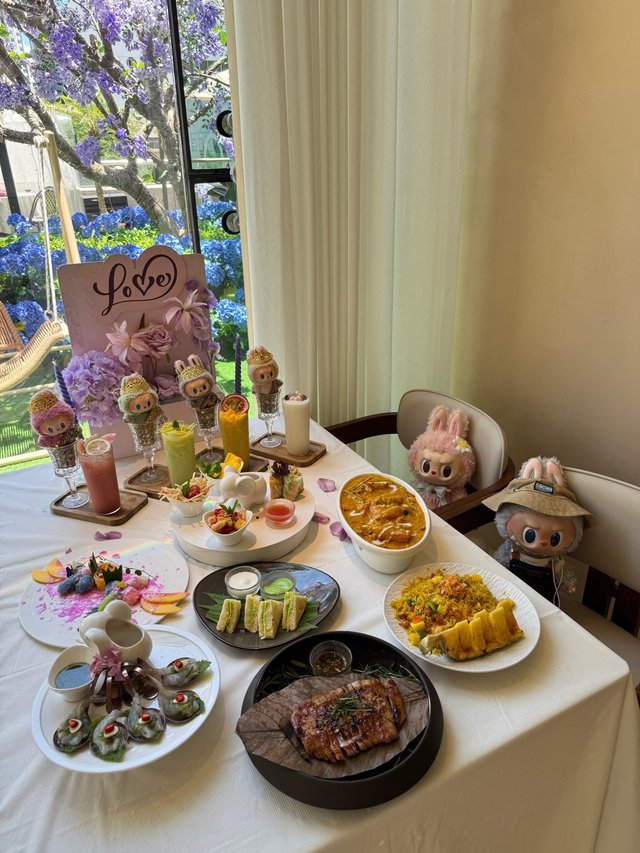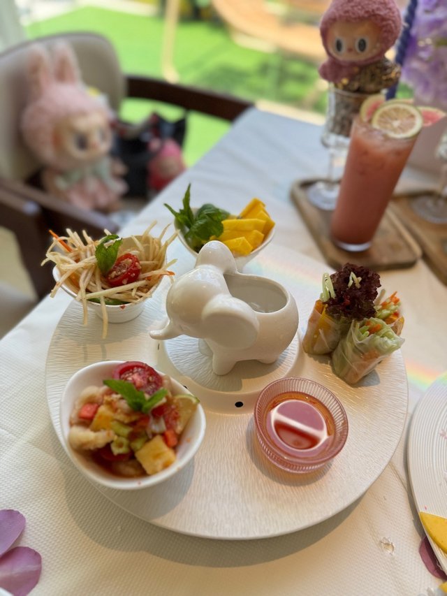今日好姐妹去落马洲口岸接我,十几分钟就到咗中航城君尚购物中心,呢度交通方便,唔揸车都好近地铁站口。呢间餐厅位于一个大型商场,分咗好多区域,设有露天帐幕、户外用餐地方。生日仲有靓靓布置,最重要系有我最爱公仔Labubu。🍞斑斕吐司配冰淇淋~ 外层香脆,内里松软,带有黄油的香气。🦐生醃蝦~新鲜虾肉质细腻,富有海鲜的自然甜味。适合在炎热的天气中享用!🥢前菜拼盘~蝦滑米子卷、木瓜沙律、泰式鳳爪、芒果沙律🐖指橙炭烤豬頸肉~猪颈肉脂肪适中,肉质鲜嫩多汁,口感极佳。指橙的清香和酸甜味为肉增添了独特的风味,平衡了油腻感。🦐泰皇古法咖喱羅氏蝦~罗氏虾肉质鲜嫩,带有海鲜的自然甜味。泰式咖喱粉的香料味道浓烈,带有微微的辛辣和独特的香气。🍍焦糖菠蘿海鮮炒飯~既有甜美的果香,又有海鲜的鲜味。🥭液氮芒果糯米飯🍹青芒油柑茶🍹青芒黃芒百香果冰🍹芭樂油柑茶🍹山竹冰沙…查看更多