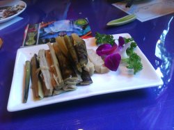 去了四个人,点了两个凉菜和麻辣香锅,口水鸡很嫩,蘸料红油,但是不是很辣,撒了芝麻、香葱末还有果仁,很香。土豆泥有大颗的葡萄干,上面是白色的奶昔,还有跳跳糖哦!吃在嘴里有奶香味,还有跳跳糖在嘴里跳跳很有意思!麻辣香锅味道不错,而且不是很辣,辣中带有淡淡的甜味。ดูเพิ่มเติม