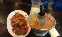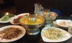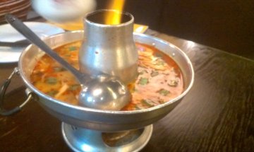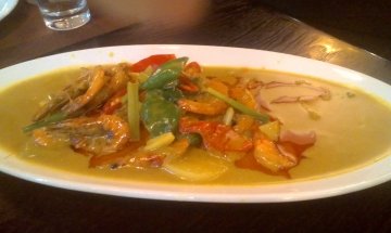 团购的,老妈生日。今天简直是大虾宴,每个菜都有虾。招牌冬阴功汤,酸酸辣辣的味道,里面有虾和金针菇。三杯鸡,鸡肉还是挺嫩的,老妈最爱吃。芒果大虾色拉,挺清爽的,吃多了重口味的,吃下色拉很舒服。黄咖喱炒大虾,我最喜欢尝里面的咖喱味,老妈说虾不是很新鲜。石窝辣椒炒饭,这个不错,里面还有很多肉,饭也很好吃。