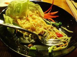 这家店的装修真是考究,很泰式的风格。木瓜沙拉很清爽,虽然刚入口的时候有些辣,我一看,原来是放了辣味的香料。虾饼是炸的,里面的虾肉很大只,Q弹爽滑。很新鲜虾肉。椰奶海鲜汤很入味,个人觉得比冬阴功汤好喝。里面的海鲜也不少哦, 一股浓浓的椰奶香在嘴里漫开的感觉特别好。绿咖喱鸡的鸡肉很嫩,也很新鲜。汤汁拌饭更是赞。查看更多