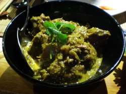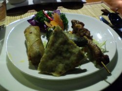 小店大不大,但装修很考究,很小资,开在800show,800是和新天地差不多的感觉,档次也是可以的有一道是泰式春卷、沙爹内串、月亮虾饼和泰式班达香叶包鸡拼盘,有三种酱搭配,花生酱、甜酱和咸酱,最喜欢“班达香叶包鸡拼盘”,很好吃,就是量小,一口没了冬阴功酸辣汤,口味有点重!海鲜量足香辣牛肉沙律和青木瓜沙律,比较清爽,不过牛肉我个人不太喜欢作为沙律,还可以红咖喱椰奶烩牛肉,和绿咖喱相比,红咖喱奶香十足,配泰国长香米吃一级棒绿咖喱鸡肉,鸡肉的量不少,第一趟吃绿咖喱,辣,但是可承受,很有好感的一道菜!泰式咖喱虾,哈哈,黄咖喱来了,这三个菜的汤汁用来拌饭么,对于爱米饭的孩子,太嗲了呀香辣咖喱羊肉,哈羊肉,这个也喜欢,量足额,味道满特别耗油五彩蔬菜,凉拌空心菜,最后上的2个清爽的素菜,也可以啊香叶椰奶糕,至今为止,泰国菜餐馆里吃到的最考究的甜品了,层次分明,非常棒他家的定价和广州蕉叶等差不多,但是更讲究更精致,所以泰爱很难不爱,有机会会再去!查看更多