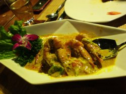 喜欢虾饼和咖喱虾,去他们家和虾干上了,觉得最好吃的就是虾饼了,沾酱料非常好吃,里面满满的虾,口感很不错的,美味啊,还有咖喱虾又是另一种美味了,咖喱是很正宗的泰式咖喱,嗲,拌饭吃一级棒的,虾很大,吃起来很过瘾,虽然价格稍贵,但是还是值得的!还吃过一个绿咖喱鸡,颜色挺特别的!服务和环境都不错!查看更多