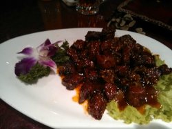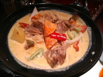 地方不算很大,但是布置的很有泰国风风情,服务也很好,相加比一般吧,我觉得小贵了点,不过味道还不错,南姜椰汁鸡汤,汤白白的微辛辣,汤口味很开胃,里面有鸡肉和蘑菇,碳烤猪颈肉,肉很细致的,非常的嫩,微甜的很好吃,吃起来很香,咖喱牛肉,咖喱的味道很浓,不会很辣的那种,牛肉很入味,不过不算很软烂的那种。…查看更多