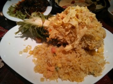 这家店在人民公园附近,主营泰式菜品。店面很大,布置的很有泰式风情。点了海鲜菠萝饭、冬阴功汤、黄咖喱香锅、猪颈肉,海鲜菠萝饭里面的菠萝挺多,配上泰国香米,味道非常好,冬阴功汤里面的大虾挺好吃,汤的味道有点怪,可能是喝不惯。黄咖喱香锅里面的肉和配菜都挺好吃,猪颈肉最是美味了,肉很新鲜,烤的火候刚刚好,这家的菜量还是很大的,价格有点贵,不过泰国菜都不便宜,偶尔换换口味还是不错的。…查看更多