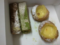 洛林挞屋开在台北东区不是太起眼,我也是路过的时候朋友说在高岛屋看到过她说那时候买了泡芙觉得灰常不错,那就走过路过不要错过咯他们家门面没什么特色,反正就是跟一般的甜品店差不多买了千层酥和原味香草泡芙,千层酥有点类似拿破仑的样子,酥皮口感还是很细腻的不过里面的奶油吃起来真的是甜腻,只能吃个两三口泡芙算是他们家的特色了,不过我倒是没什么感觉,可能是外面泡芙吃过了他们家的泡芙并不惊艳,当然也不难吃,皮脆脆的,不过内陷一般般啦感觉他们家开在百脑汇生意挺一般的说~…查看更多