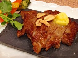 知床套餐中我最爱的就是雪花和牛牛排了。这块牛排的鲜嫩程度决定了整个套餐的质量,也是最最重头戏的一道菜。这个牛肉可以说是我吃过最嫩的牛排了,但是它是熟的,不是生的,所以能把牛排放在石板上煎熟而又肉质这么嫩,我实在太佩服了。查看更多