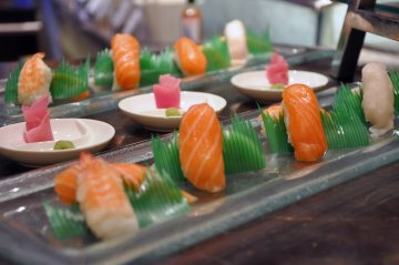 自助餐厅,选择的种类很多。比较喜欢的是海胆,还有甜虾寿司。海胆,海胆的口感真的是不错,入口还是蛮软绵的,一点都不腥。甜虾寿司,上层的甜虾质感还是蛮厚的,质感也比较好,米饭也很柔软。价格会有点小贵,但是性价比还算适中。