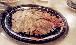 位置很好找,但环境很一般,不通风人多的话感觉烟雾缭绕的,有点呛。肉的种类挺多的,看着也相对比价干净,海鲜比较少,贝壳类的基本上都是又小又塞满沙子,无法入口。青菜熟食挺多的,吃一边基本上就饱了。培根不错,不咸不淡正好入口。