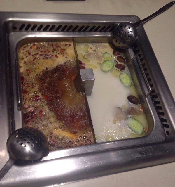 海底捞的服务员很好,就是等位的人太多了。所以我们一家人中午就凑合吃了点,下午5点多就来。好在没等位,简直太幸运了。一家人来吃,火锅,点了鸳鸯锅,他家的辣锅其实不是很辣,但是白汤还不错,开锅后我妈喜欢先喝口那个汤,骨头汤熬的,口感很香。牛蛙、嫩牛肉、毛肚都是必点的,我觉得在这里吃就这些最香了,羊肉反而很平淡了。吃辣锅推荐香油碟,一点不觉得油,反而很香。价格有点涨了,5人消费400多呢。