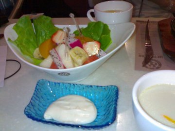 这家应该算是女性餐厅了。因为满目都是红色。红色的招牌,红色的纱帘,红色的大花,吊灯周围红色的流苏,还有红色的大柱子。老板是加拿大华人,在中国开了不少连锁店。主题是百变淑女。不知男士坐在这里是什么感觉。菜品中、西式都有,有点贵。中午时有套餐供应,有五种,配汤、甜点、水果、米饭等,价格蛮实惠的。服务很不错,服务生会为你想得很周到。铁板特嫩牛排:除牛排外,还配有通心粉、鸡蛋、圣女果、薯球。牛排很大一块,选的七成熟,口感很嫩滑。烧上黑椒汁,味道很不错。薯球粉糯,很好吃。吃一份足够吃饱。番茄牛肉饭套餐:配有龟苓膏、水果、例汤。例汤有料,有凤爪、黄豆、花生,汤不是那么稀,味道较鲜。龟苓膏也较真,有一丝丝的苦味。牛肉做的很嫩,配上番茄,酸酸甜甜的,很开胃。水果是西瓜,很甜。菜品的味道很不错,想下次再去。…查看更多