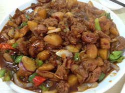 桥头我们经常来吃的,他家的牛肉锅贴每次必吃的,煎的油润润的金黄色泽很好吃,某次看见别人点了大盘鸡就惦记上了,大盘鸡他家菜单上没有的,要自己问的,某次我们就冲着大盘鸡去了,两个人点了个大盘鸡加米饭,等了会超大盘的大盘鸡就上来了,和吃饭的碗对比下真的是超级大,配的土豆和宽面,两个人怎么吃也吃不掉啊,鸡肉很嫩很入味,土豆糯糯的沾上汤汁真美味,还有宽面,吃的太满足了~~~查看更多
